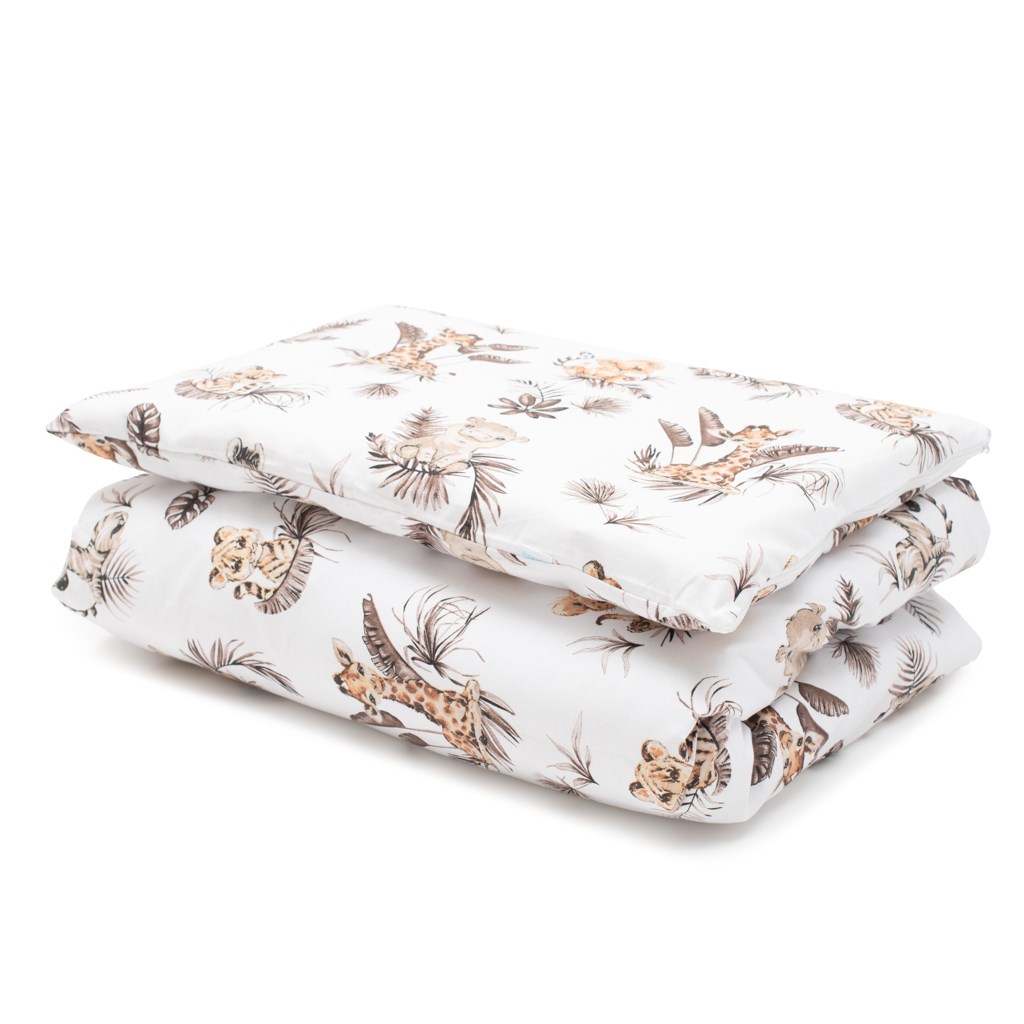 Baby 2-delige bedset New Baby Safari is een product van het Tsjechische merk New Baby. De set is gemaakt van 100% katoen. Kwalitatief hoogwaardig uitgevoerd en met een prachtig kindermotief. Het bevat een dekbedovertrek voor een kussen van ongeveer 40x60 cm + een dekbedovertrek voor een dekbed van ongeveer 120x90 cm. Materiaal 100% katoen.