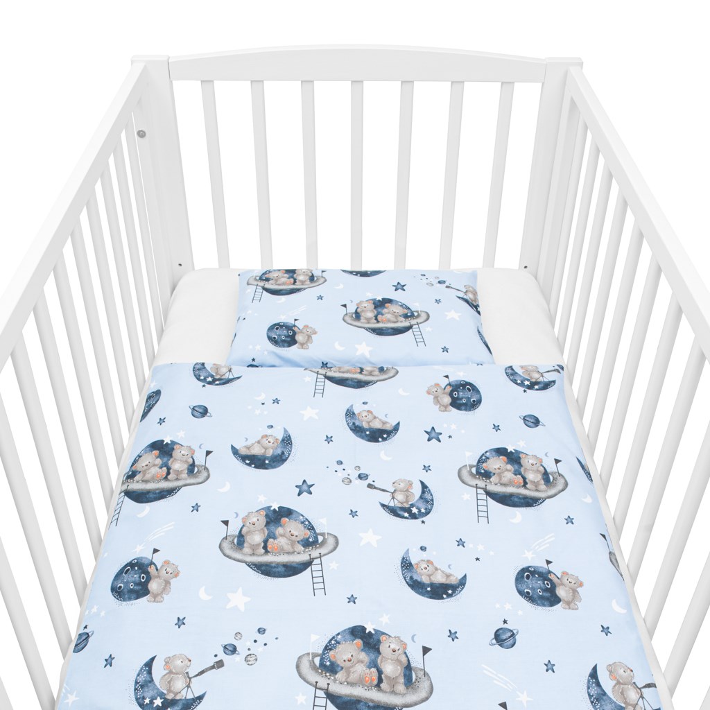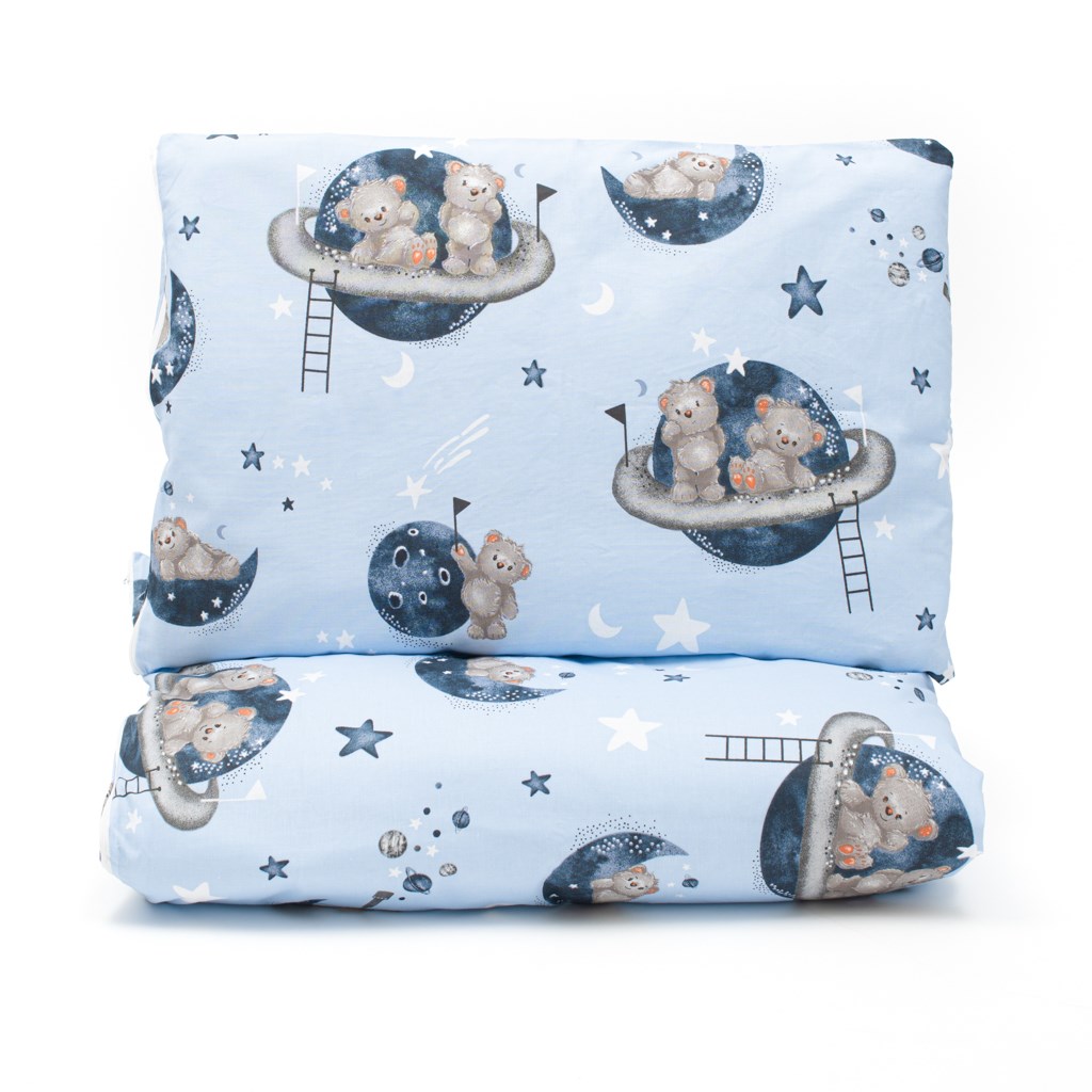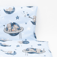 Baby 2-delige bedset New Baby Teddy bear in space is een product van het Tsjechische merk New Baby. De set is gemaakt van 100% katoen. Kwalitatieve uitvoering en een prachtig kinderontwerp. Bevat een hoeslaken voor een kussen van ongeveer 40x60 cm + een dekbedhoes van ongeveer 120x90 cm. Materiaal 100% katoen.