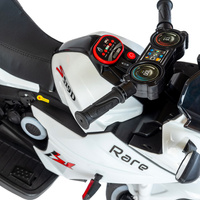 De elektrische kinder motor Rare Baby Mix is uitgerust met een 6V7AH batterij en twee motoren met een vermogen van 380. Het beschikt over een eenvoudig startfunctie met één knop, die zowel vooruit als achteruit rijden mogelijk maakt. De motor is uitgerust met muziek, kinderliedjes, een kaart voor datalezing voor vroege educatie, drie wielen en LED-koplampen. Comfort wordt gegarandeerd door het leren zitje.