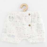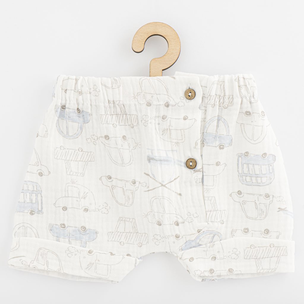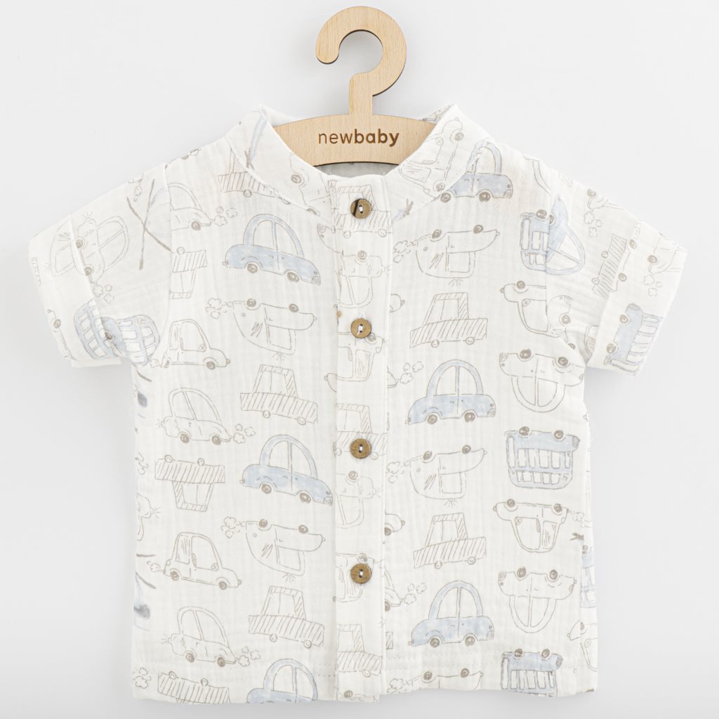 Stijlvolle 2-delige mousseline set van het Tsjechische merk New Baby My Cars voor baby's. De set bevat een blouse en korte broek. De blouse met korte mouwen heeft een knoopsluiting. De trendy short heeft een bredere elastische tailleband en een valse knoopsluiting. Een prachtige, luchtige set voor zomerse dagen voor jongens. De set is lichtgewicht en zeer aangenaam om te dragen. Mousseline is een van de puurste, eenvoudigste en fijnste stoffen ter wereld. Het fijn geweven ademende materiaal is zo perfect dat kinderen over de hele wereld ervan zullen houden. De lichte structuur laat de mousseline "ademen" en zorgt voor voldoende luchtcirculatie, waardoor het risico op oververhitting wordt verminderd. Deze eigenschap helpt uw kind comfortabel en veilig te houden, en biedt ouders gemoedsrust. Mousseline is zeer duurzaam en kan gemakkelijk herhaaldelijk gewassen worden, en wordt met de tijd lichter en zachter. Samenstelling: 100% katoen. OEKO-TEX STANDARD 100.