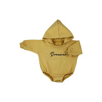 Creatief longsleeve romper met capuchon Koala Dreamer. De romper heeft drukknopen tussen de beentjes, wat het aankleden en verschonen vergemakkelijkt. Rond de hals is er een elastische rand voor eenvoudig aan- en uittrekken over het hoofd. Het is versierd met de tekst Dreamer en is ontworpen in een baggy stijl van zeer fijne sweatstof. De romper is een essentieel kledingstuk voor baby's. Bij elke beweging blijven de ruggetjes van de baby altijd bedekt. Materiaal: 96% katoen, 4% elastaan.