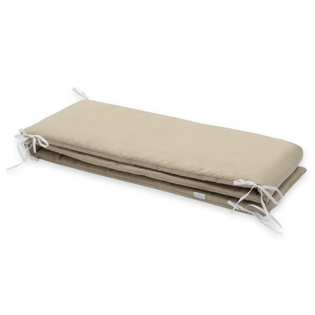 Moderne en praktische bedomranding voor de wieg New Baby. Gemaakt van zachte, aangename materialen. Samenstelling: 100% katoen. Vulling: 100% polyester. Bevestiging aan de wieg met behulp van linten. Afmeting: ongeveer 180x30 cm.