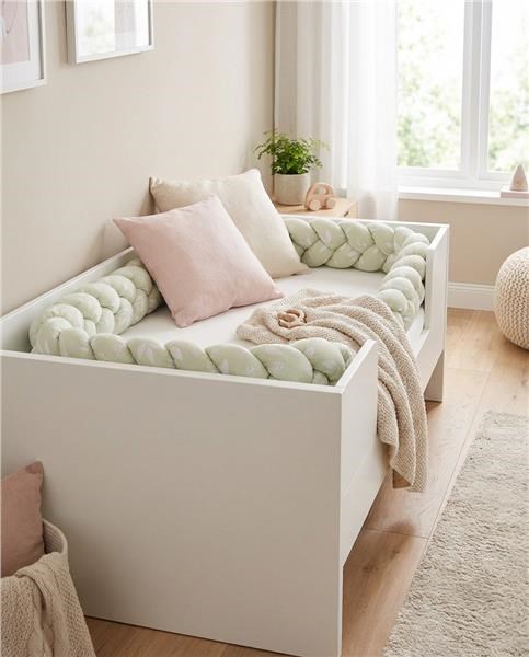 Het zachte en praktische gebreide vlecht van het Tsjechische merk New Baby is een moderne alternatieve voor het traditionele of kussenrandje, niet alleen voor het ledikantje van uw baby. Alle drie de strengen zijn gemaakt van zeer hoogwaardige katoenen materialen en anti-allergische polyester vulling, handmatig in een vlecht gevlochten. U kunt het gebruiken in het ledikant, de wieg, waar het uw kind beschermt tegen de harde spijlen van het bedje en het isoleert van de koude muur. In uw bed vervult het de functie van een nestje, waarbij u de baby eenvoudig inwikkelt voor een nog groter gevoel van veiligheid en comfort. De rand past zich aan elk bedje aan en kan eenvoudig worden bevestigd met behulp van de drie meegeleverde linten. Een ouder kind kan het gebruiken voor vermaak of als originele decoratie voor de kinderkamer.