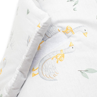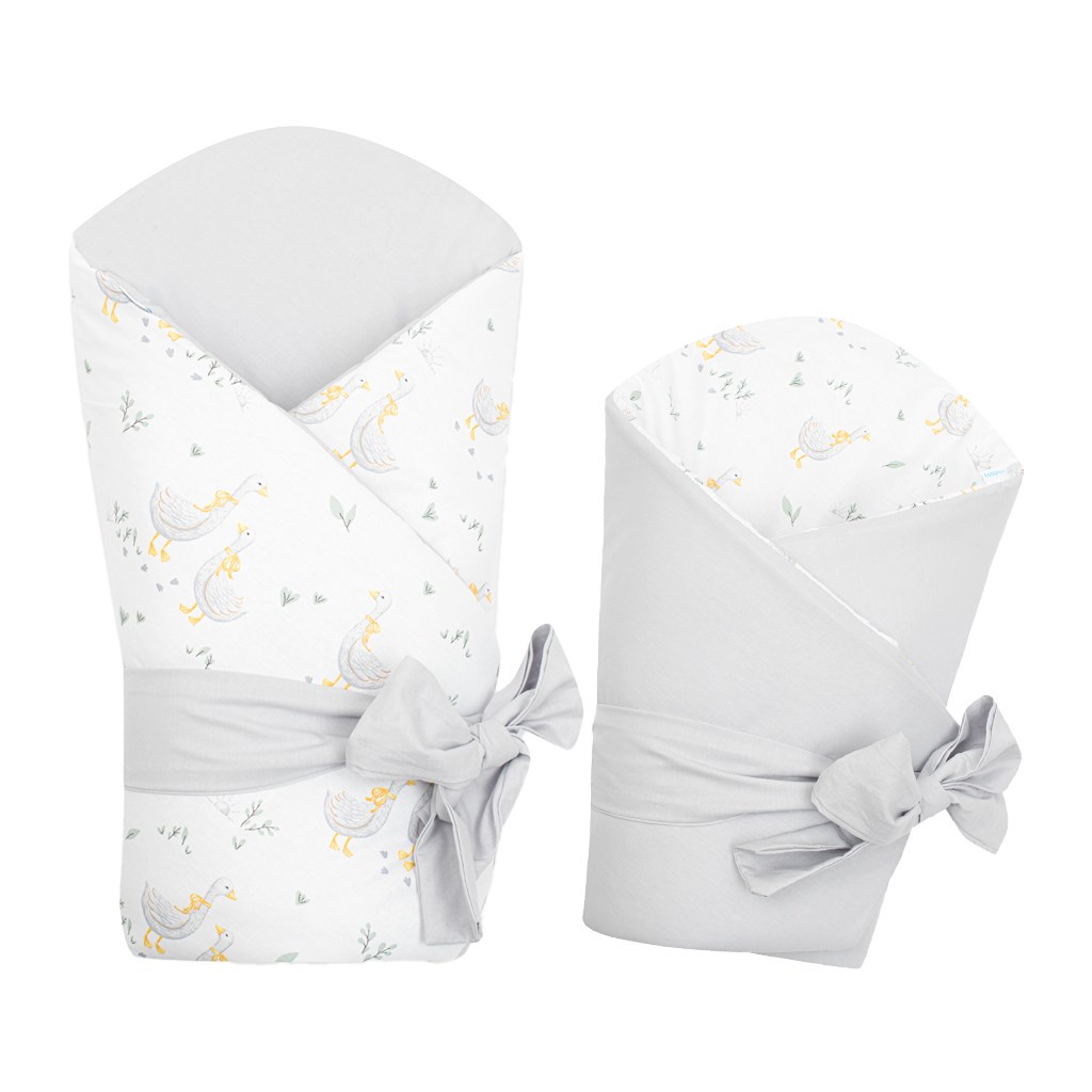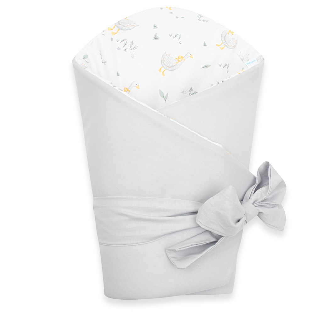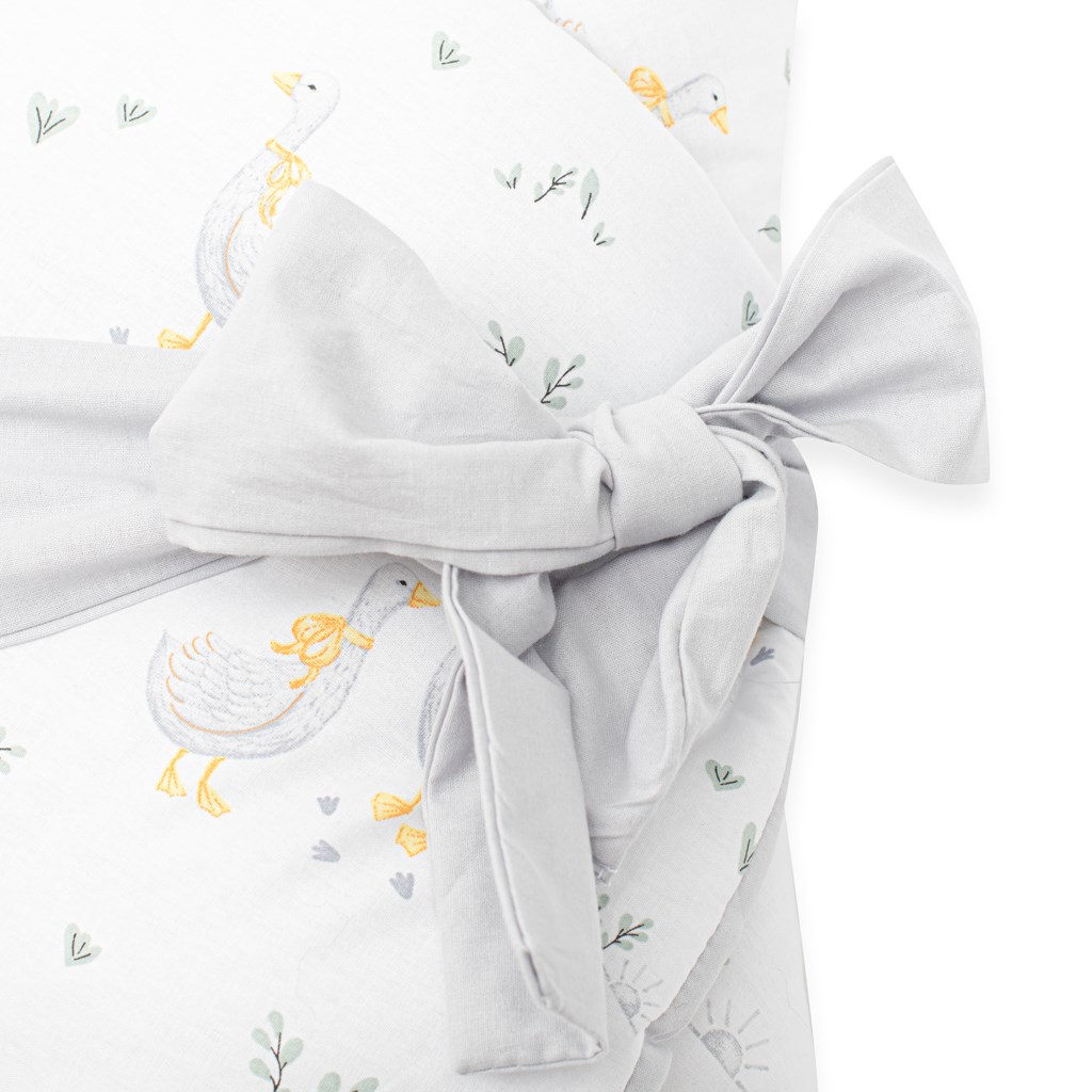 Prachtige dubbele wikkeldoek van het Tsjechische merk New Baby Husičky voor baby’s. De wikkeldoek is gemaakt van hoogwaardig en zacht materiaal dat uw baby aangename warmte biedt. De vulling is tot 3 cm dik, wat betekent dat de wikkeldoek ook geschikt is voor koelere dagen en stevig genoeg is. Mooie kindermotieven met schattige gansjes die de oogjes van uw kindje zullen verblijden. Sluiting met klittenband en een strikbandje.