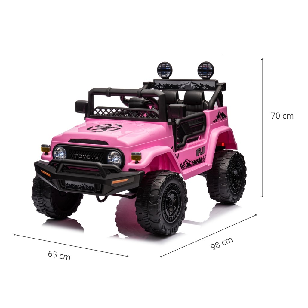 De TOYOTA FJ CRUISER biedt uw kind geweldige mogelijkheden voor de ontwikkeling van motorische vaardigheden. Het is gemaakt van duurzaam plastic. Het heeft een 12 volt batterij, een afstandsbediening, voor- en achterlichten, geluids effecten op het stuur, twee openende deuren en veiligheidsgordels - dit alles maakt het verschillend van andere voertuigen van dit type en maakt het spel nog leuker!