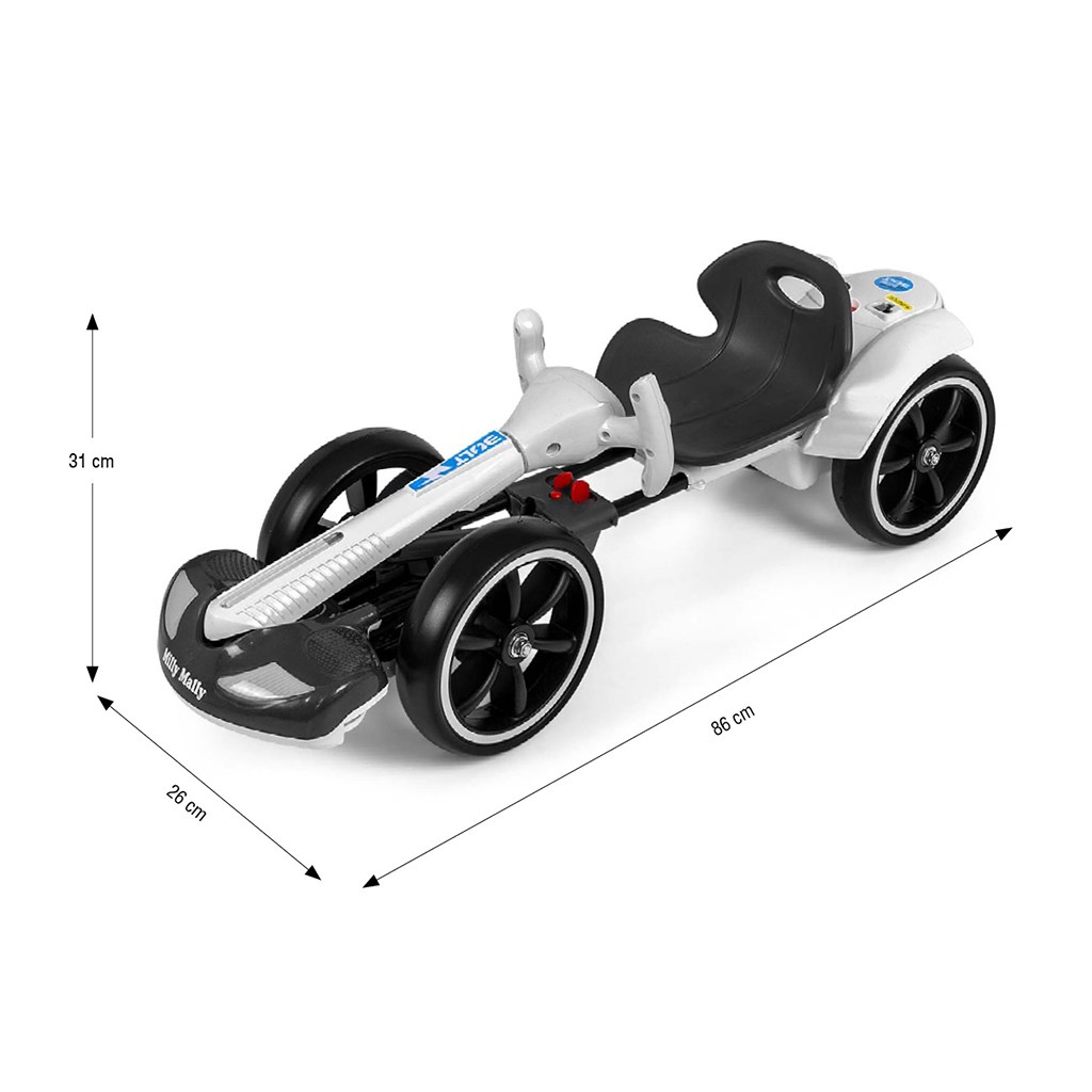 Geef uw kind de echte rijervaring. De elektrische gokart BOLT Milly Mally is een moderne accugokart voor kinderen vanaf 3 jaar, die sportief ontwerp, veiligheid en veel plezier combineert. Dankzij twee motoren, LED-verlichting en afstandsbediening genieten zowel kinderen als ouders van het rijden – zowel binnen als buiten.