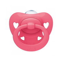 Fopspeen NUK Signature 6-18 maanden. De orthodontische vorm ondersteunt de ontwikkeling van de hele mondholte van het kind. De fopspeen is verbeterd en heeft nu een nog plattere vorm. Hij is gemaakt van hoogwaardig plastic en silicone. En nu heeft deze populaire fopspeen een geweldige nieuwe uitstraling – het favoriete ronde zuiggedeelte in een hartvormig schild en een modieus verbeterde schattige ring. Dit zorgt ervoor dat het kleine gezichtje er nog schattiger uitziet. Elke nieuwe NUK fopspeen wordt geleverd in een duurzame, herbruikbare doos die de fopspeen schoon houdt. De doos is bovendien geschikt voor hygiënische reiniging in de magnetron. Het zuiggedeelte en de ring zijn gemaakt van polypropyleen en bevatten geen BPA. Maat 2 (6-18 maanden). Alle NUK fopspenen worden regelmatig getest en gecontroleerd door onafhankelijke instituten.