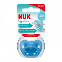 Fopspeen NUK Signature 6-18 maanden. De orthodontische vorm ondersteunt de ontwikkeling van de hele mondholte van het kind. De fopspeen is verbeterd en heeft nu een nog plattere vorm. Hij is gemaakt van hoogwaardig plastic en silicone. En nu heeft deze populaire fopspeen een geweldige nieuwe uitstraling – het favoriete ronde zuiggedeelte in een hartvormig schild en een modieus verbeterde schattige ring. Dit zorgt ervoor dat het kleine gezichtje er nog schattiger uitziet. Elke nieuwe NUK fopspeen wordt geleverd in een duurzame, herbruikbare doos die de fopspeen schoon houdt. De doos is bovendien geschikt voor hygiënische reiniging in de magnetron. Het zuiggedeelte en de ring zijn gemaakt van polypropyleen en bevatten geen BPA. Maat 2 (6-18 maanden). Alle NUK fopspenen worden regelmatig getest en gecontroleerd door onafhankelijke instituten.