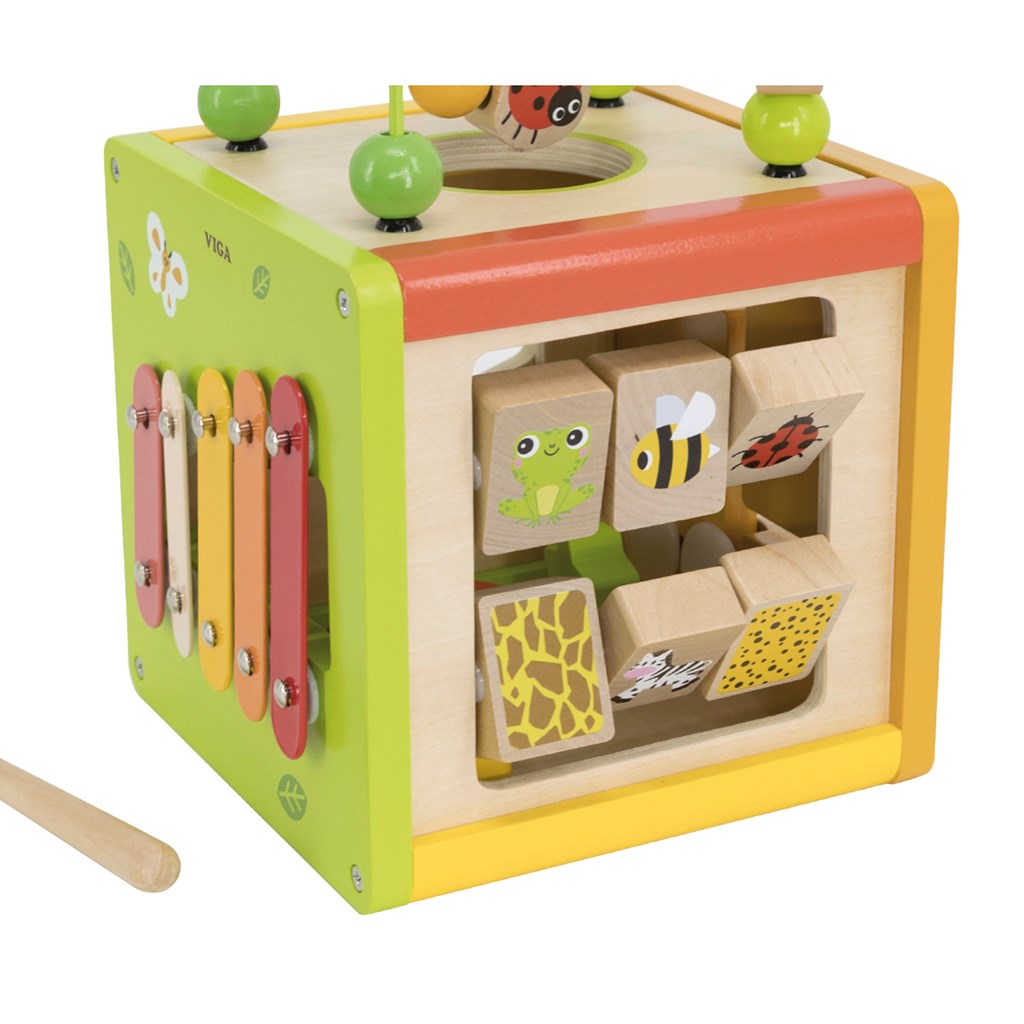 De educatieve blok met ruimtelijk doolhof van Viga is het ideale cadeau dat elk kind zal verrassen. Dit multifunctionele speelgoed biedt uw kind urenlang plezier. Elke zijde van de blok biedt een andere activiteit en het kind kan zelf kiezen waar het mee wil spelen.