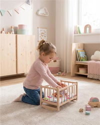 Het bedje is gemaakt van natuurlijk gladgeschuurd hout, zonder scherpe randen, en is dus volledig veilig voor de kleinste kinderen. De stevige constructie garandeert een lange levensduur en duurzaamheid tijdens dagelijks spel.