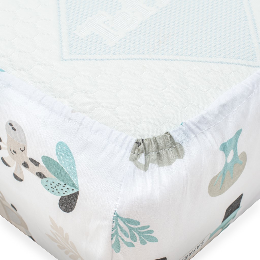 Bamboo dekbedovertrek New Baby Safari is gemaakt van gladde en aangenaam aanvoelende katoenstof. Een prachtige kindermotief dat de oogjes van uw kind zal verwonderen. De ingelegde elastiek voorkomt dat het dekbedovertrek van de matras glijdt, garandeert de juiste spanning van het dekbedovertrek en maakt het mogelijk om zich aan elke vorm aan te passen. Het dekbedovertrek is geschikt voor matrassen van 120x60 cm. Het is een klassiek katoenen dekbedovertrek dat niet elastisch is en heeft daarom een afmeting van 90x150 cm, zodat het perfect over de volledige matras past, ook aan de onderkant.