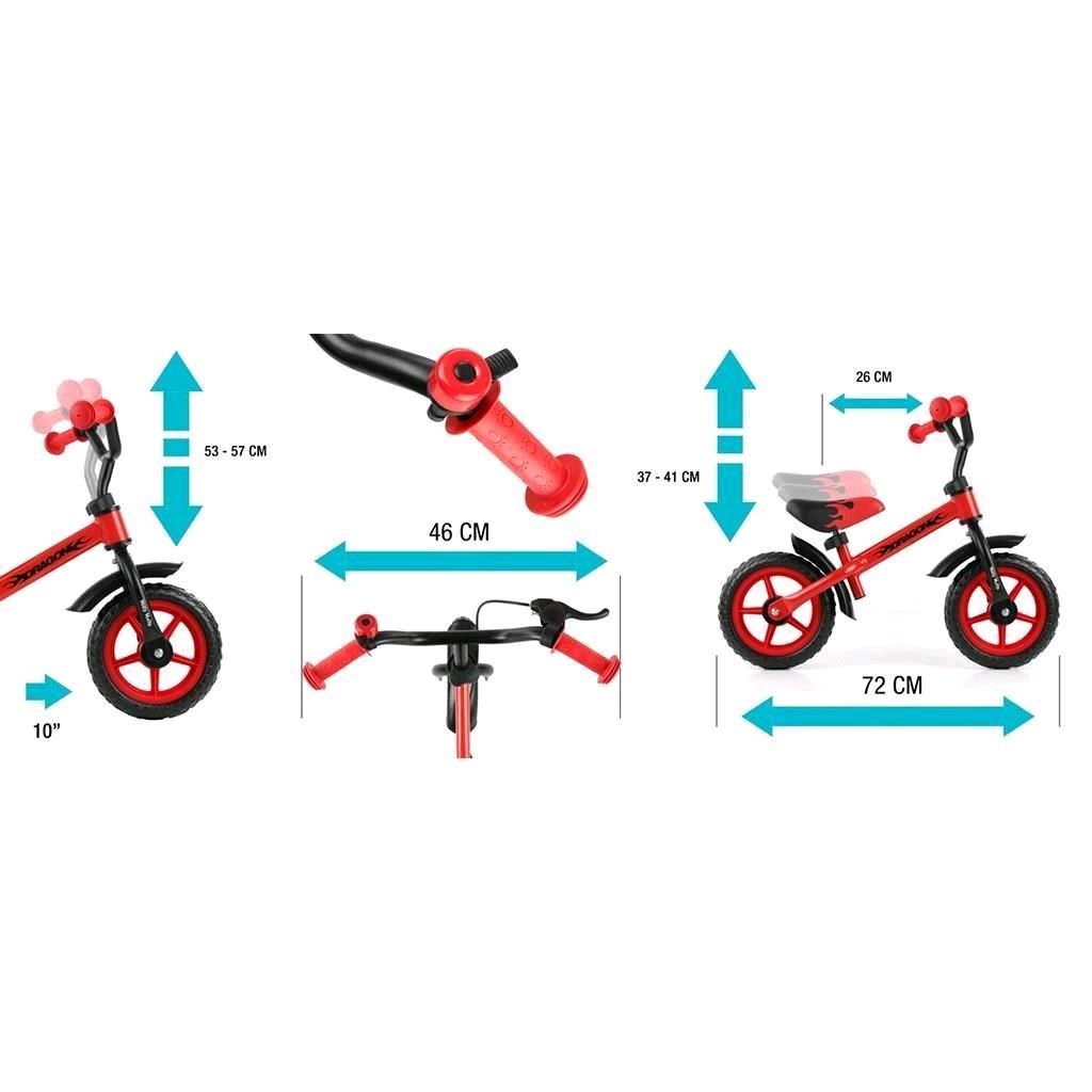 Het Milly Mally Dragon loopfietsje is ideaal voor kinderen die leren hun balans te houden. Het is de beste keuze als alternatief voor een fiets met zijwieltjes, waardoor het later makkelijker wordt om op een traditionele fiets te rijden. De fiets is zonder pedalen, zodat het kind zich voornamelijk kan concentreren op het houden van balans en de rijrichting. Het heeft een rem, een comfortabel zadel en een stevig, kwalitatief frame. De kleur kan variëren afhankelijk van de actuele voorraad.
