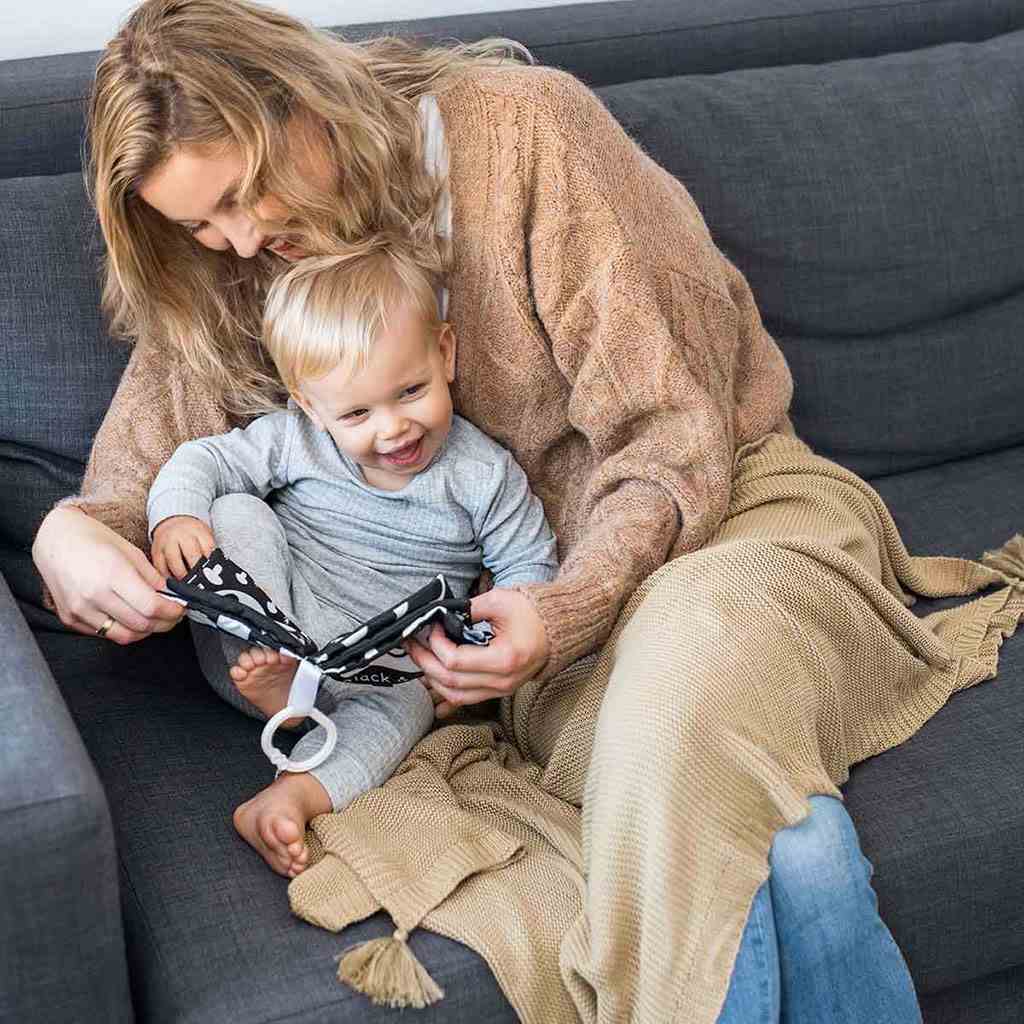 Het boek stelt kinderen in staat om nieuwe vaardigheden te ontwikkelen, van het oefenen van greep, tot het stimuleren van het tandvlees met kauwgom met uitsteeksels, tot het leren tellen en het herkennen van verschillende oppervlakken en vormen. Het heeft heldere, contrasterende kleuren die het zicht, de verbeeldingskracht en het concentratievermogen ontwikkelen.