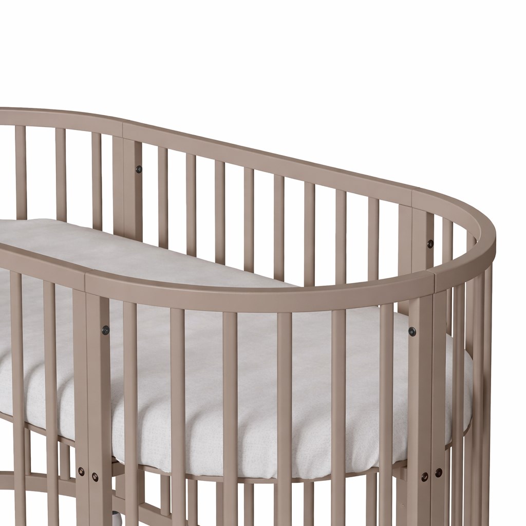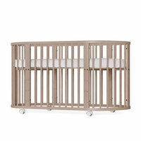 Het bed kan ook dienen als een omheining. Het ontbreken van hoeken helpt het kind op te staan en te kruipen.