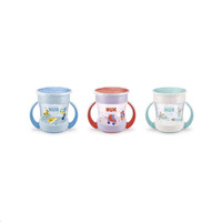 Mini Magic NUK 360° Kinderbeker met Deksel. De revolutionaire sluiting maakt het mogelijk om zonder tuit of rietje vanuit elke kant te drinken, waardoor het kind leert zelf te drinken zoals uit een normale beker. De trainingsbeker met 360° drinkrand, die morsbestendig is, helpt kinderen om te leren drinken uit een grote beker zonder te knoeien. Het traint de kindermonden die zich moeten ontwikkelen. De drank begint pas te vloeien wanneer de sluiting door de mond van het kind wordt ingedrukt, zodat je je geen zorgen hoeft te maken dat de vloeistof uit de beker lekt. Ideaal voor onderweg of op uitstapjes. Geschikt voor kinderen vanaf 6 maanden. Bevat geen BPA. Kenmerken: