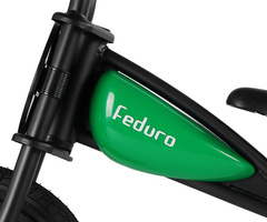 De blokkering tegen overmatige draaibewegingen van het stuur en de lagerwielen verhogen de veiligheid. Antislip handgrepen met beschermingseindjes beschermen de handen tegen schuren. Het gevormde en zacht gevoerde zadel biedt comfort tijdens elke rit. De FEDURO is een ideaal hulpmiddel om balans te oefenen voordat met een trapfiets gereden wordt.