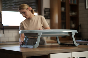 Het badje is uitgerust met een afvoerventiel en een bandthermometer, wat het comfort en de veiligheid bij dagelijks gebruik aanzienlijk verhoogt. Het kan eenvoudig tot een hoogte van slechts 10 cm worden opgevouwen, terwijl de kunststof poten direct onder het badje klappen – waardoor het minimaal ruimte in beslag neemt en ideaal is voor opslag, zelfs in kleinere ruimtes.