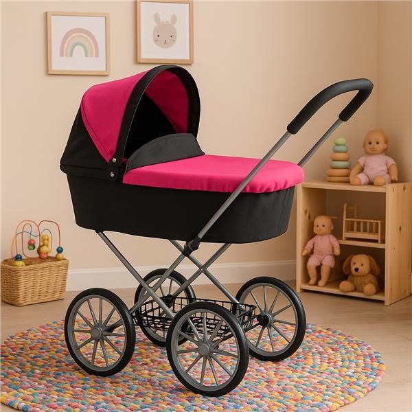 Stijlvolle en schattige kinderwagen in klassieke retro stijl die elk klein meisje dat graag gezinsspelletjes speelt, blij zal maken. Dankzij de zorgvuldige afwerking en praktische elementen zal de kinderwagen Betty een geliefd speelgoed en een trouwe partner voor dagelijks spel worden.