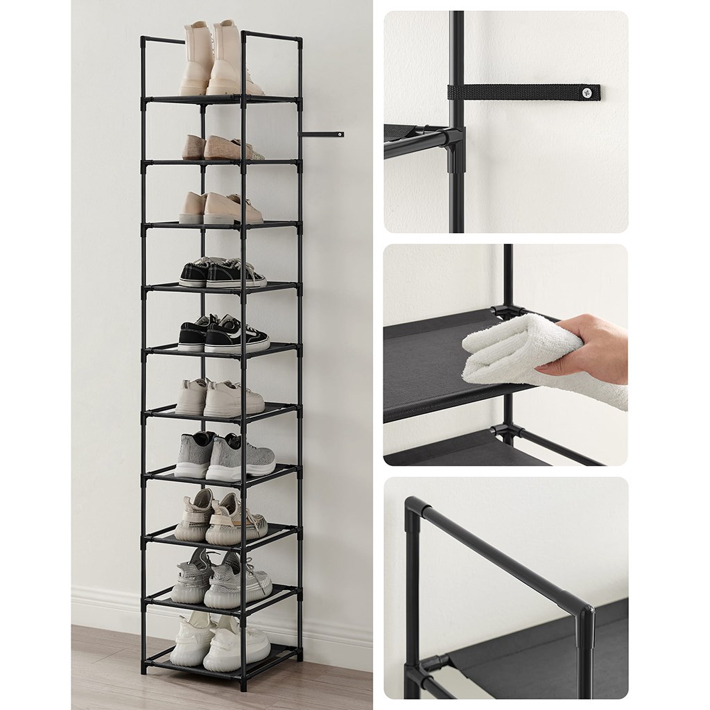 Het rek bevat 10 planken voor schoenen, die afhankelijk van de grootte van uw schoenen tot 10 paar kunnen bevatten.