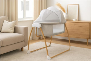 De bekleding van de wieg is gemaakt van ademend en aangenaam aanvoelend materiaal dat gemakkelijk kan worden verwijderd en gewassen.