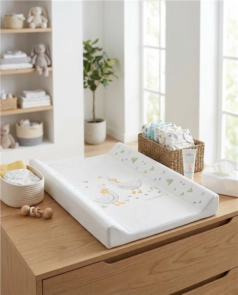 Praktische vormgevende verschoningsmodule New Baby Gansjes van waterdicht kunststofmateriaal in aangename pastelkleuren. Het schattige en actuele kindermotief met gansjes zal zeker de aandacht van uw baby trekken.