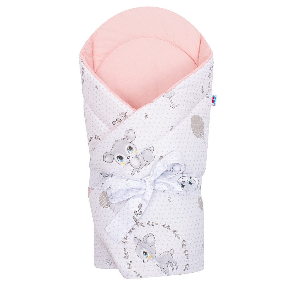 Babywikkeldoek New Baby met afbeelding, kokosversteviging en klittenbandsluiting. Afmetingen ongeveer 75x75 cm. Samenstelling: hoes 100% katoen, vulling 100% polyester. Hoogte van de kokosmat is ongeveer 1 cm. De plaatsing van het patroon op de wikkeldoek kan door de machineproductie iets variëren.